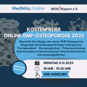 Medizinisch immer aktuell informiert. Individuell angepasst, verlässlich und mit sicherem Background. Unser Newsletter im Rahmen der Kooperation von MedWiss.Online und MEDI Bayern e.V. Mit Ihrer persönlichen Anmeldung zu dem Newsletter, erhalten Sie bis auf Widerruf diesen ab sofort kostenfrei von uns per E-Mail zugesendet. Wir wünschen Ihnen spannende Momente.